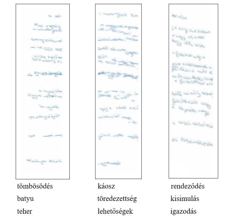 Káosz -> Kapott dolgok feldolgozása, befogadása, illetve elvetése. Itt is vannak egymásra írt sorok, de jóval ziláltabb, szaggatottabb ez a terület.